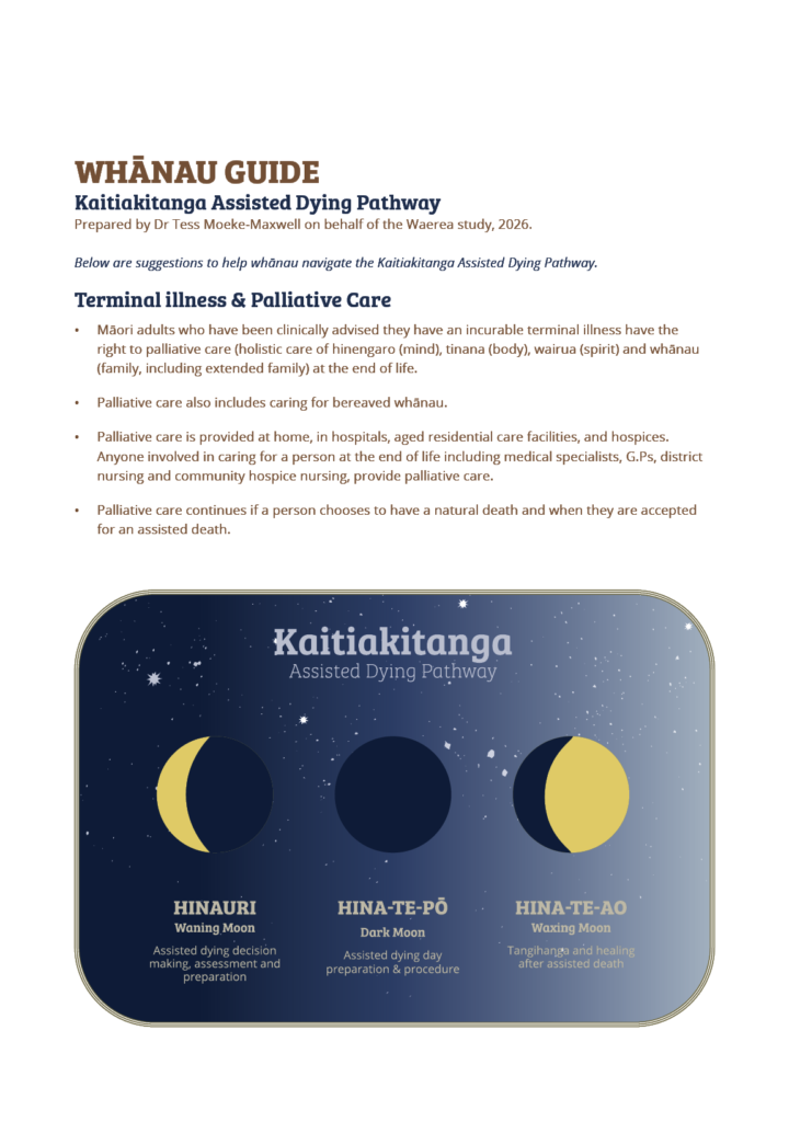 Nanipā’s Choice is a fictional story about Nanipā Hemi’s choice to have an assisted death. Volunteer actors and actresses and graphic illustrations illustrate some of the issues that arise for Nanipā and his whānau. More information about the story is provided at the back of the book.